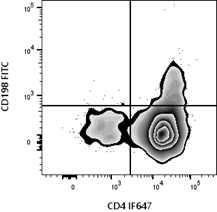 Flow cytometry data are visualized through plots that reveal population structure and signal distribution.