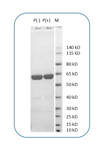 | Molecular Weight | The protein has a predicted molecular weight of 59.2 kDa. Under DTT-reducing conditions, it migrates at approximately 65 kDa on SDS-PAGE. |