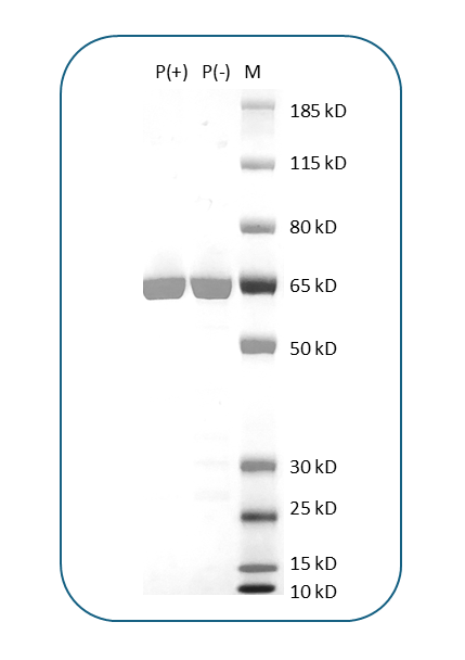 | Molecular Weight | The protein has a predicted molecular weight of 61.3 kDa. Under DTT-reducing conditions, it migrates at approximately 65 kDa on SDS-PAGE. |