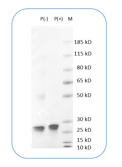 Molecular WeightThe protein has a predicted molecular weight of 21 kDa. Under DTT-reducing conditions, it migrates at approximately 25-30 kDa on SDS-PAGE prior to conjugation.