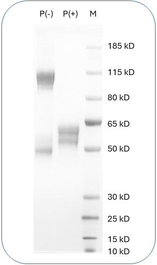 | Molecular Weight | This protein has a predicted molecular weight of 54.5 kDa. Under DTT-reducing conditions, the protein migrates at approximately 50-60 kDa on SDS-PAGE. |