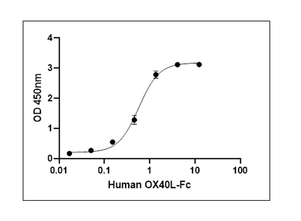 OX40 (also known as CD134) is a costimulatory receptor belonging to the tumor necrosis factor receptor (TNFR) superfamily. Upon binding to its ligand OX40L, OX40 signaling promotes the development of long-lasting memory T cells and sustains immune responses. It is primarily expressed on activated T cells and plays a crucial role in enhancing T cell proliferation, survival, and cytokine production.. Because of its central role in modulating immune activation and tolerance, OX40 is an important target for immunotherapy in cancer, autoimmune diseases, and infectious diseases