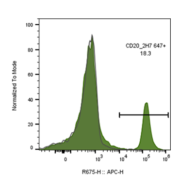 CD20 is a 33-37 kD, four transmembrane spanning protein, also known as B1 and Bp35. CD20 is expressed on pre-B-cells, resting and activated B cells (not plasma cells), some follicular dendritic cells, and at low levels on a T cell subset. CD20 is heavily phosphorylated on activated B cells and malignant B cells. Homo-oligomeric complexes of CD20 are thought to form Ca2+ conductive ion channels in the plasma membrane of B cells. The CD20 molecule is involved in B-cell activation and is associated with various Src family kinases (Lyn, Lck, Fyn). It exists in a complex with MHC class I and II, CD53, CD81, and CD82. The epitope recognized by clone 2H7 has been mapped to the sequence YNCEPANPSEKNSPST, which lies in the large extracellular loop of human CD20.