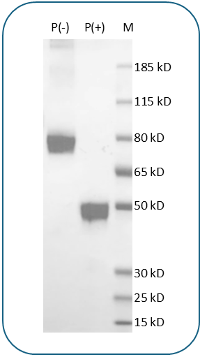 Molecular WeightThis protein has a predicted molecular weight of 42.9 kDa. Under DTT-reducing conditions, the protein migrates at approximately 50 kDa on SDS-PAGE.