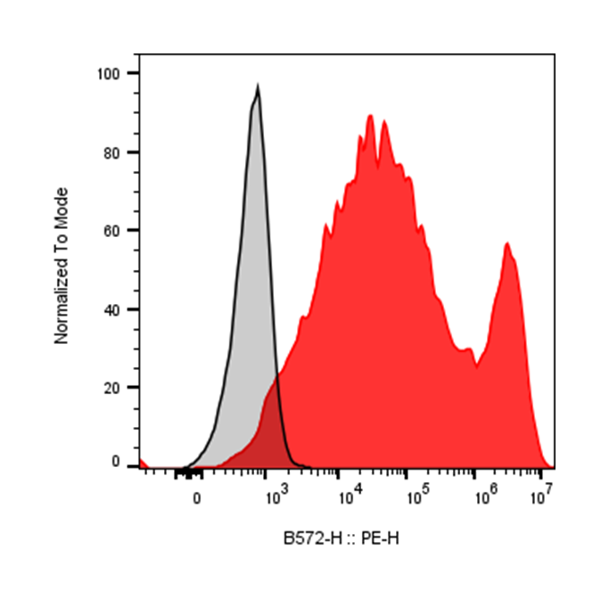 | Recommended Usage | For flow cytometric staining, it is recommended to use 5 uL of this reagent per 0.5-1.0 million cells in a 100 µL volume. Optimal reagent performance should be determined by titration for each specific application. PE has an excitation max at 565 nm and an emission max at 575 nm. |